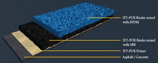 SUPER ELASTOCOAT (842) - Highly flexible , wet-pour cushion sub layer for sport flooring systems.